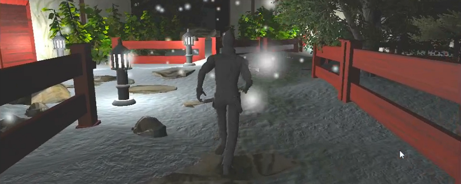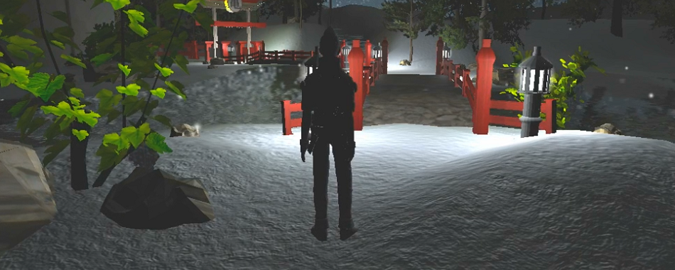 A small winter environment inspired by Japanese culture and imagery where the player is able to walk around and observe the simulation.